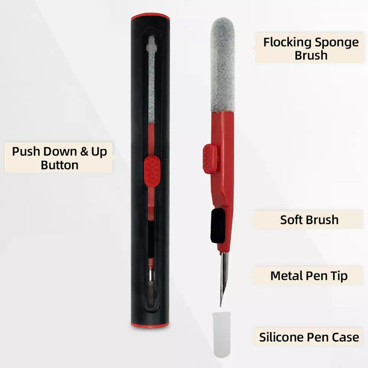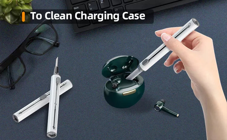 • Multi-function headphone Cleaning Pen: our 3 in 1 cleaning pen with Flocking Sponge, Soft Brush and metal Pen Tip, makes it easy to clean dust or dirt from your headphones, charging case or phone speaker.